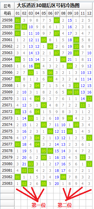 后区0路号码有3 6 9 12,后区1路号码有1 4 7 10,后区2路号码有2 5 8 11。