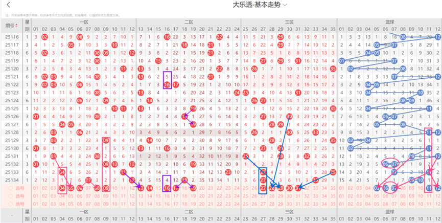 龙本龙-大乐透-第135期选号分析,重点关注一区和三区