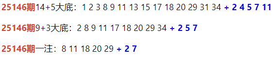 25147期14+5大底:2 3 4 6 8 9 10 11 16 18 22 23 25 31 + 1 4 6 9 11