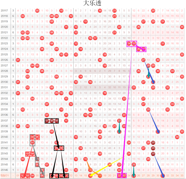 注意5个红球的组合冷温热码和值范围保持在-1~5