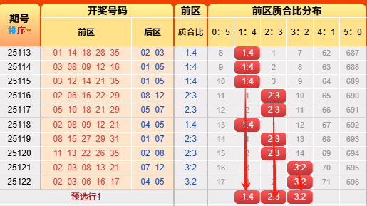 上期质合3:2,又命中啦,近42期命中41期范围。来看历史次数统计05出现268次、14出现901次、23出现1005次、32出现509次、41出现100次、50出现7次,再看近十期质合比出现的次数比044200,冷值50暂时放弃,再结合图形来看,本期趋势看顺路,初步选择为3:21:42:3具体请点击本条上车查看精选质合比