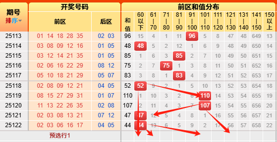 接下来我们来看前区小大、奇偶、质合、和值分布图: