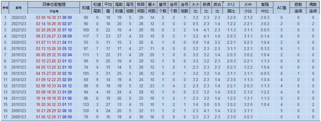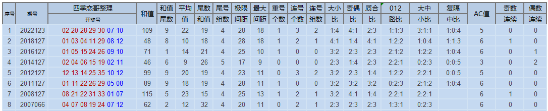 下图为大乐透彩种诞生以来每年的123期各类数据以及历年同日期开奖数据,各位大佬及彩友们请拿走~