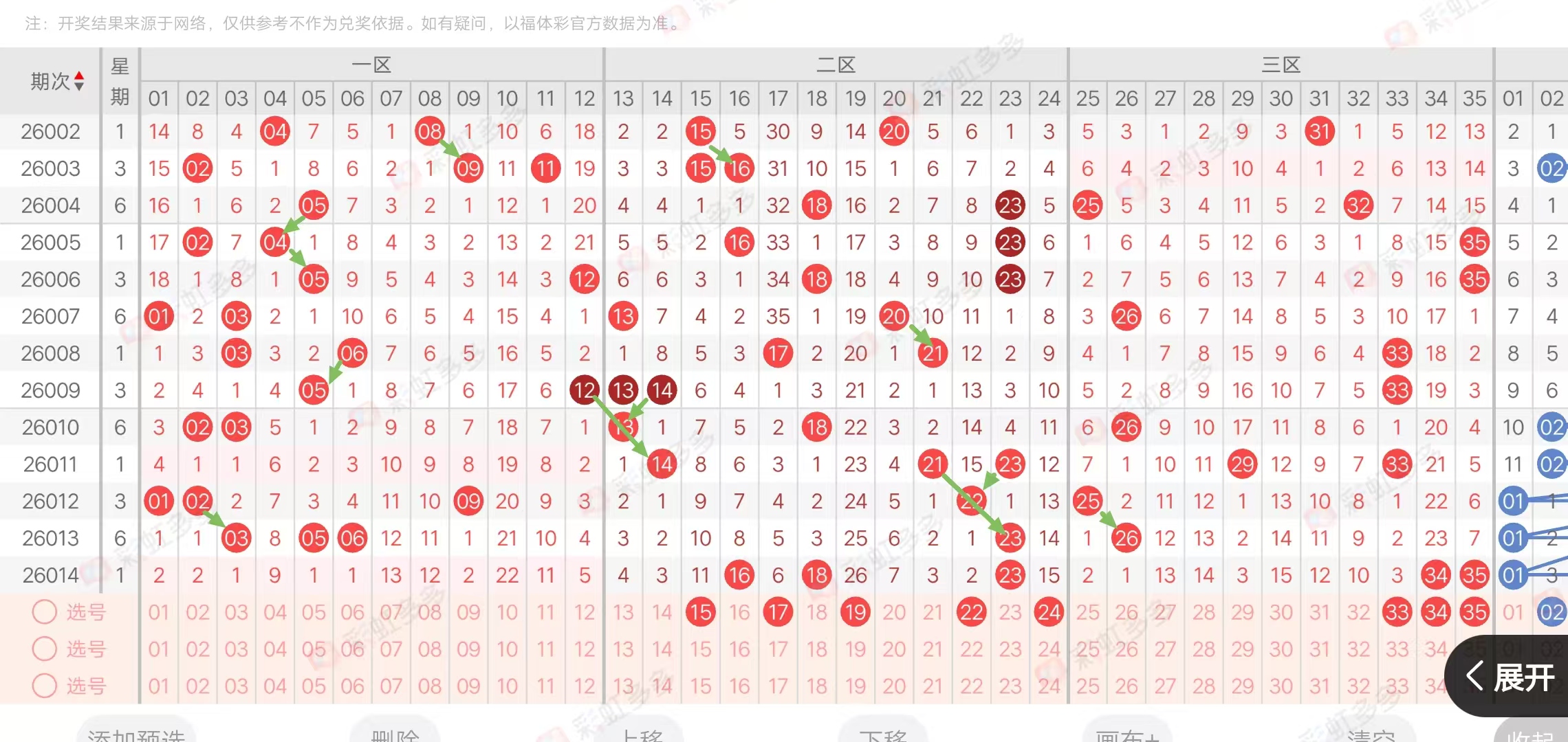 各位自己参考前面的条件,增加一些条件过滤就可以了,不想过滤的也可以根据三区,大小,合理搭配,还可以在重码,隔期码,邻码,参考一下。