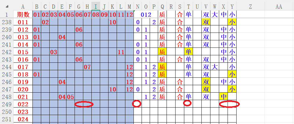 如上图4,012路分析012路,本期重点12路。重点 03 06 07 11 13