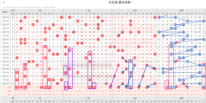 龙本龙-大乐透-第134期选号分析,区间比看好212