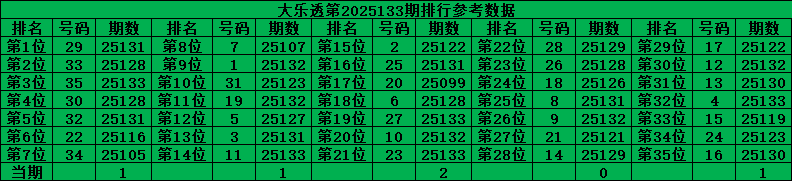 近期开出最多的位置是第1、3位,对应本期号码是:29 35号