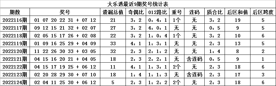 马姐大乐透第2022125期:后区胆码连中,本期后区注意重号回补