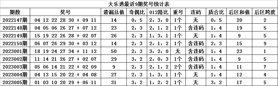 大乐透第2023006期:连续两期后区两码全准,本期注意后区重号