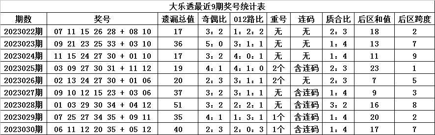 大乐透第2023031期:上期前区胆码正确,本期注意前区同尾和连码