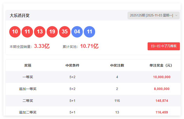 上一期大乐透一等奖开出4注,其中两注追加。单注追加奖金达到了封顶的1800万。