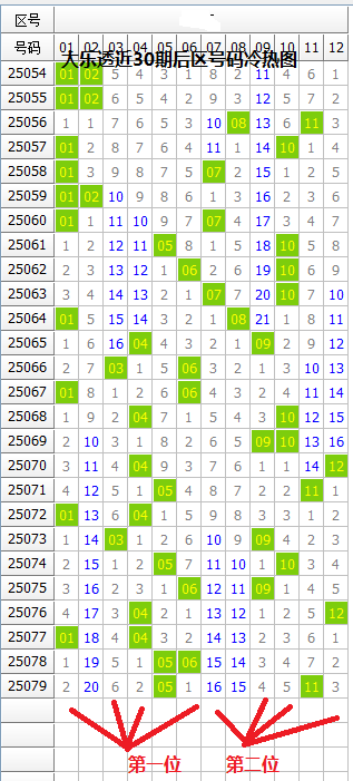 上期热、温、小、大冷为1211组合形态。追踪数据请参考前面的大乐透关键参数统计表。