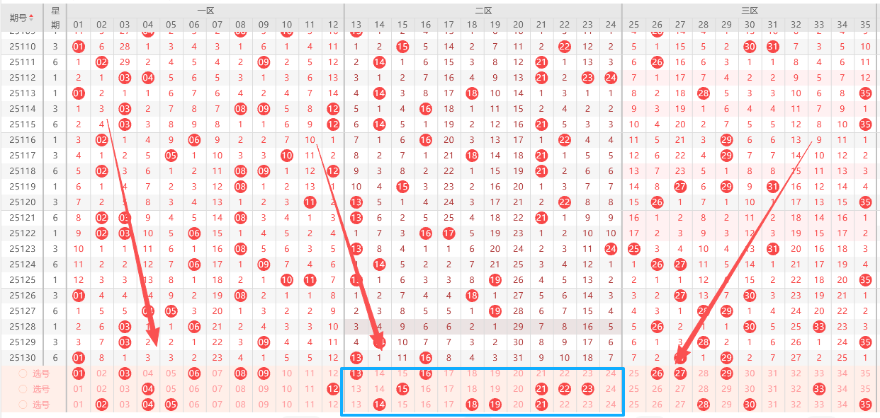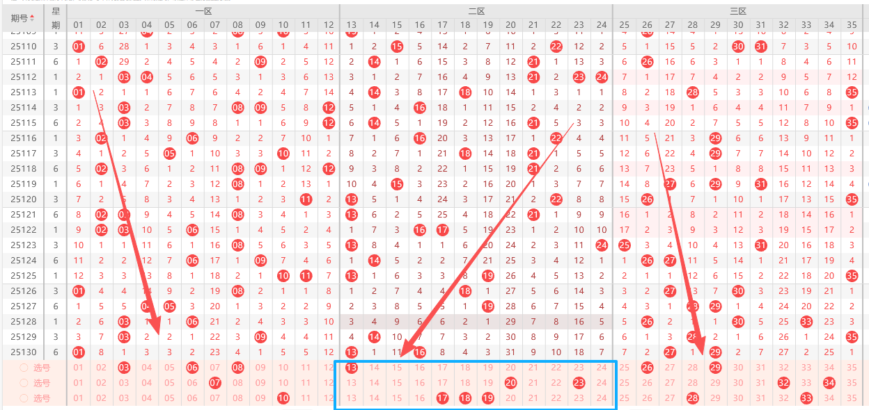 本期3区号码,总体分析如下(蝴蝶根据概率算法,结合大数据统计,总结出一套不错的算法,总体的3区分析如下):