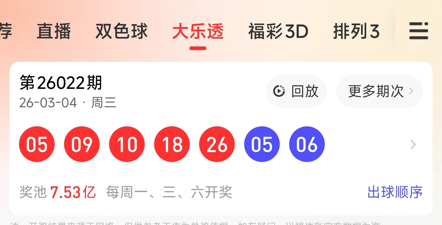 第26022期大乐透文章推荐,蓝球胆码命中5。