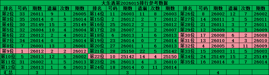 近期开出最多的位置是第32位,对应本期号码是:04号