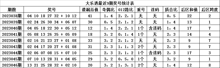 大乐透第2023047期:上期后区胆码正确,本期后区继续参考一大一小