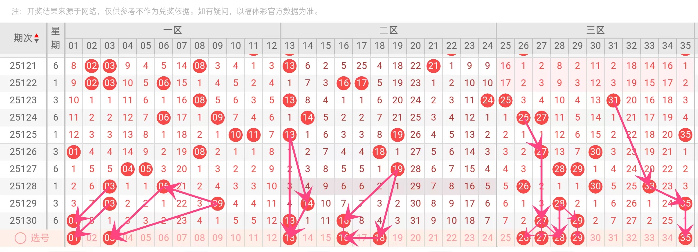 遗漏控制:号码35在129期出现后未被重复,但作为最大号,它在历史中常作为收官号,避免号码区间过于集中。同时,避开了近5期过热号码如30(出现2次但可能冷却)和完全冷号如02、07,减少风险。