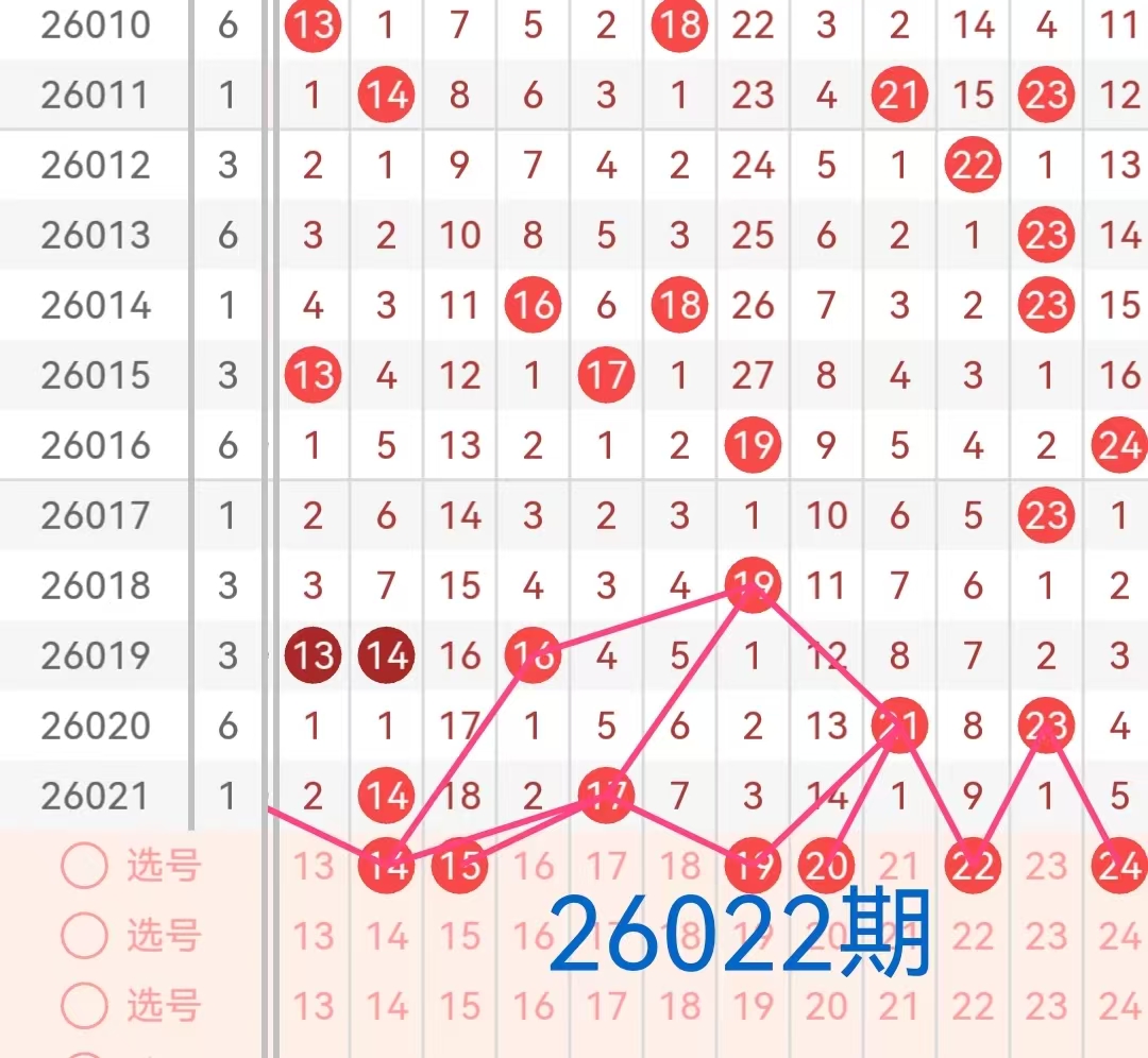 2. 二区(13-24):上期该区间开出两个号码14和17,号码14在遗漏1期后再次开出,号码17为该期的凤尾号码,在遗漏5期后开出。根据历史开奖来看,近期该区间活跃度较高,本期预计会有1-2个号码会继续开出。特别是那些遗漏次数较大的号码15、20、22和该区间内近期表现较好的号码14、19、24这个号码在走势上表现出一定的稳定性,且与前几期出号形成呼应,有望出现在本期开奖中。