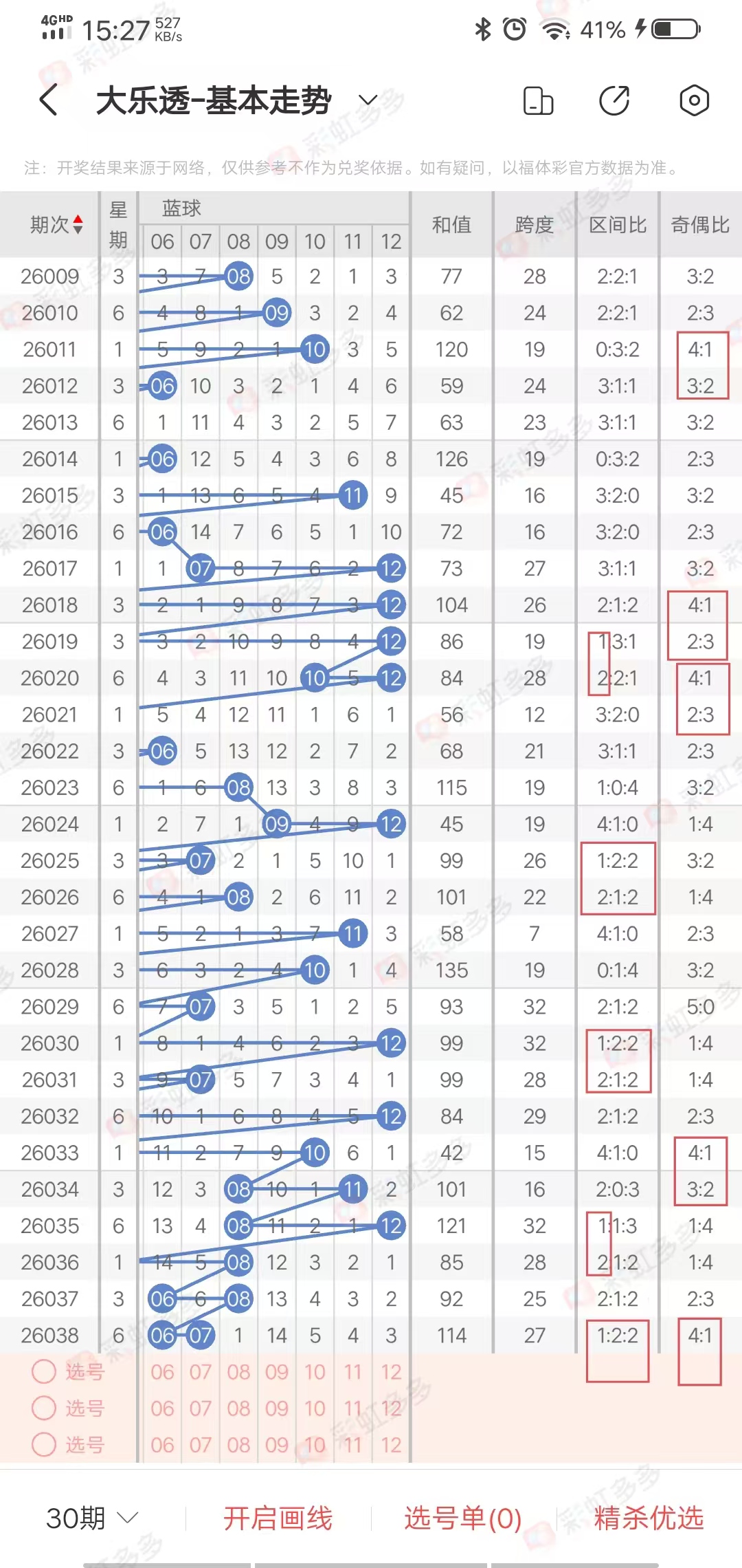 ✔本期大乐透奇偶比分析