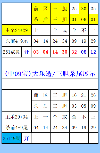 大乐透第149期综合图文(中09宝),三胆推荐,上期三胆30杀前24+29