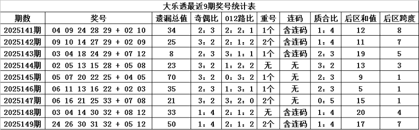 9期奇偶比例为2025,奇号出现较少,上期奇偶比为14,本期预计偶号表现相对活跃,关注奇偶比23