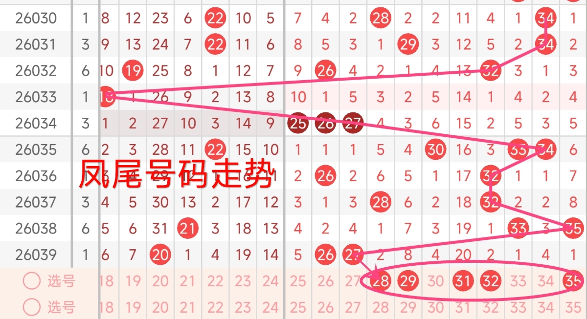上期凤尾号码为27,振幅下降了8点,开出奇数号码。从近期凤尾号码的走势来看,近期凤尾号码波动较大。再看凤尾走势,近5期凤尾绝大多数落在2-35的高位区间,上期意外落到27,属于短期的异常波动,从历史规律来看,高位凤尾是长期主流,上期回落只是短暂调整。预计本期凤尾号码可以重点关注28-35区间开出。本期还需注意连续多期漏出的号码,需重点关注,有回补凤尾号码的趋势 。综合考虑,本期凤尾号码可以重点关注28、29、31、32、35。