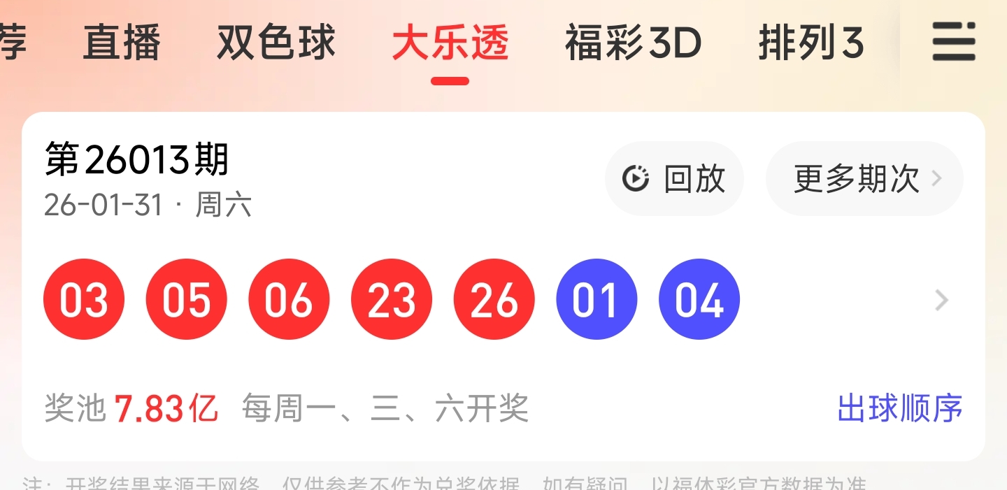 第26007期大乐透文章推荐中命中1,3,13,26等3个红球,蓝球3,10。