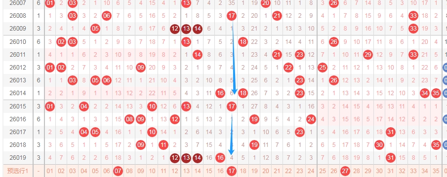 上面是体彩大乐透后区号码分析的过程,下面来分析本期前区号码的思路。