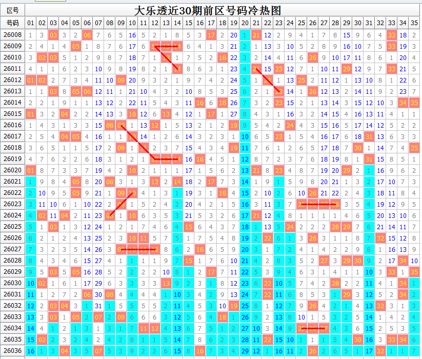 对前区大势的把握,少不了号码区间分布的情况。