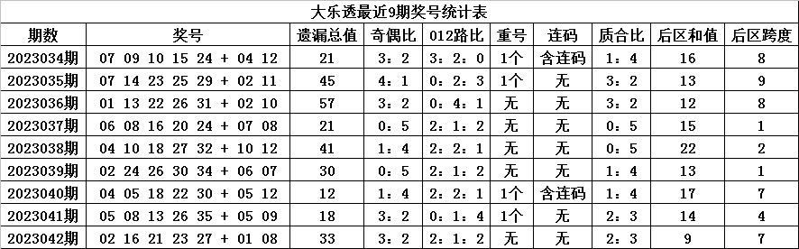 大乐透第2023043期:上期后区胆码正确,本期注意后区重号