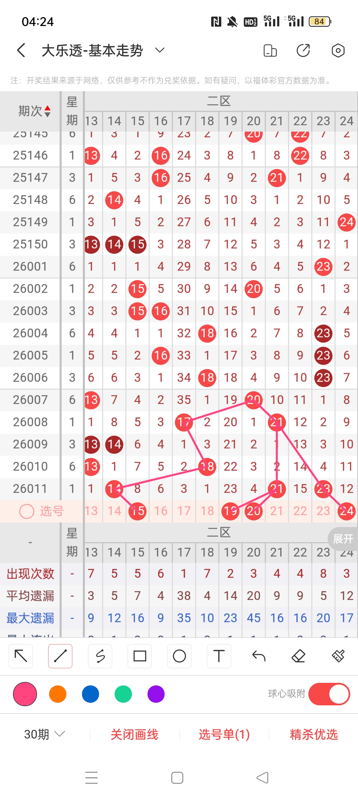 26011期开奖结果:14、21、23、29、33+2、10,奇偶比:1,大小比,和值62,012路203,邻孤传0邻5孤0传,同尾号23、33,传号无,连号无。总结完毕,下面开始本期分析。