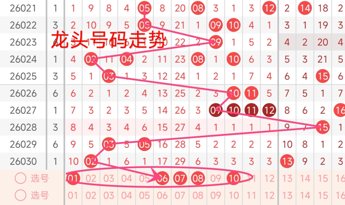 龙头号码走势分析: