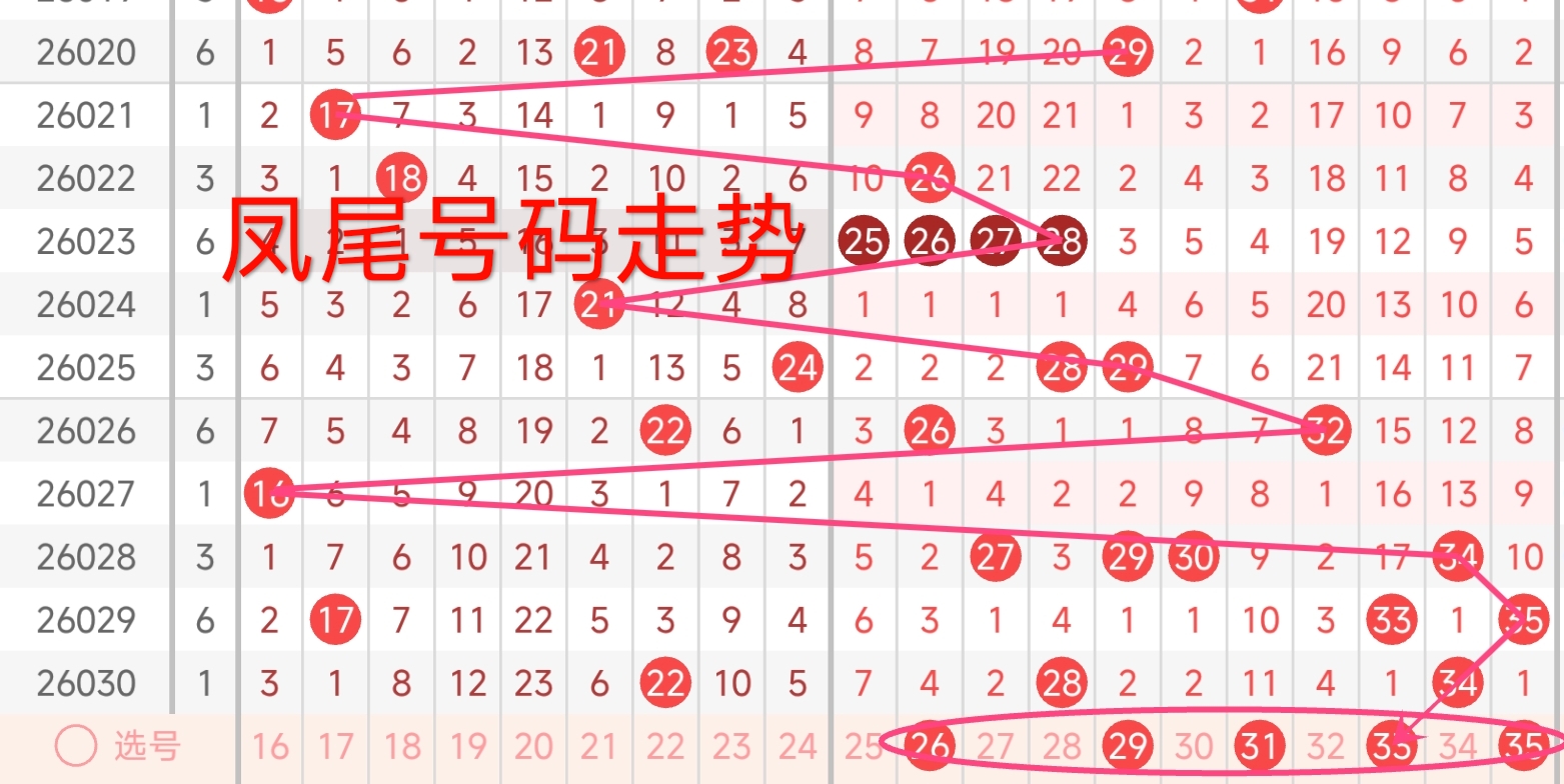 上期凤尾号码为34,振幅下降了1点,开出偶数号码。从近期凤尾号码的走势来看,近期凤尾号码波动较大。上期凤尾号码为34。近三期凤尾始终站稳33以上的高位区间,34、35更是连续三期霸占凤尾席位,从冷热交替的运行逻辑来看,同一号码区间连续热出,过度聚集之后必然迎来阶段性回调。此前凤尾开出一次16的低位凤尾,随后立刻反弹回高位,已经完成一轮低位回补,因此本期不会出现大幅跳水,更大概率向的中间高位回落,预计本期凤尾号码可以重点关注26-35区间开出。本期还需注意连续多期漏出的号码,需重点关注,有回补凤尾号码的趋势 。综合考虑,本期凤尾号码可以重点关注26、29、31、33、35。