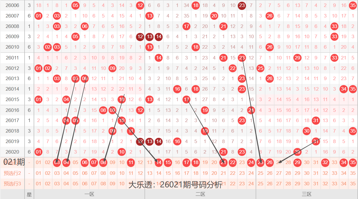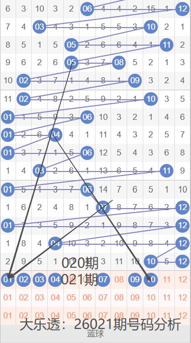 大乐透:26021期号码落位分析(上期3+1)