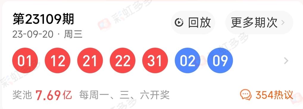 上期开奖号码为:01 12 21 22 31 02 09,本期直落号防守31。