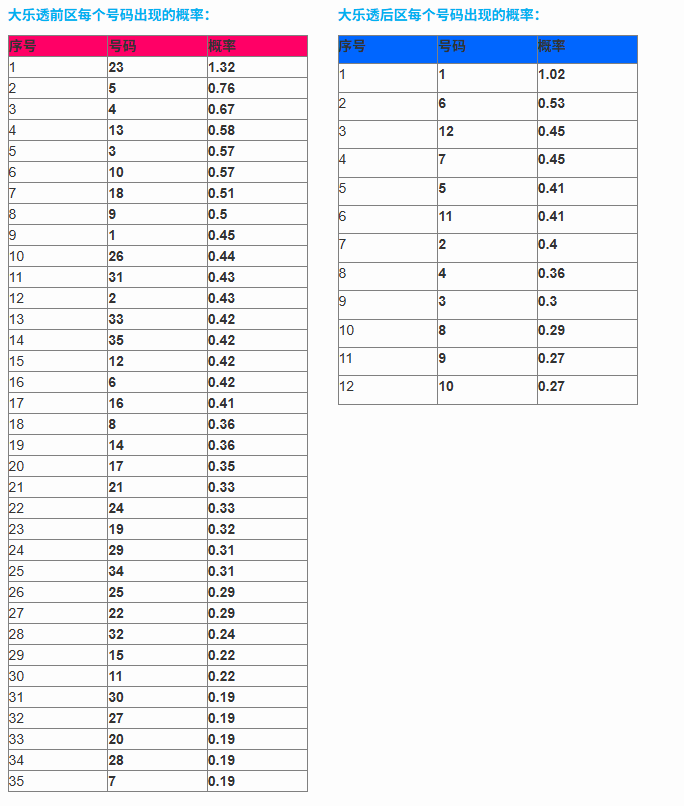 概率前10:23, 5, 4, 13, 3, 10, 18, 9, 1, 26, ;