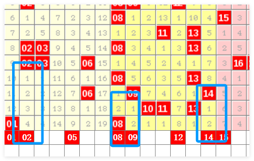 号码之间的关联关系是提升选号精准度的关键,主要包括连号、重号、斜连号等现象。