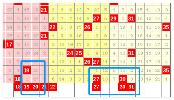 • 字头分区法:按字头分为0字头(01-09)、1字头(10-19)、2字头(20-29)、3字头(30-35)四个区间。若某区间连续3期未出号(断档),下期出号概率显著上升。