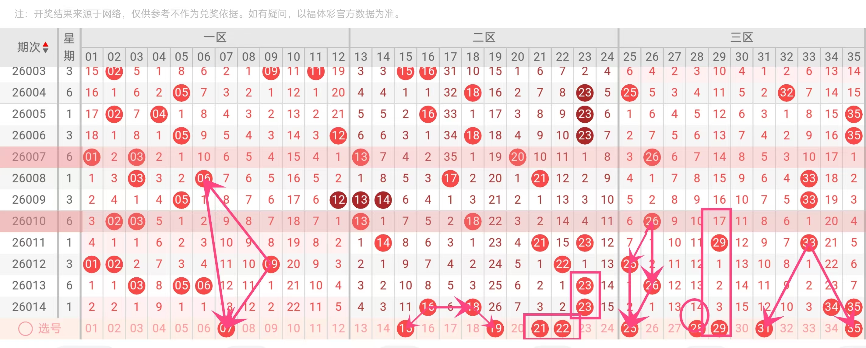 前区低频/遗漏号:04、07、08、10、11、12、15、17、19、20、24、27、28、30、31、32等近5期未出现。