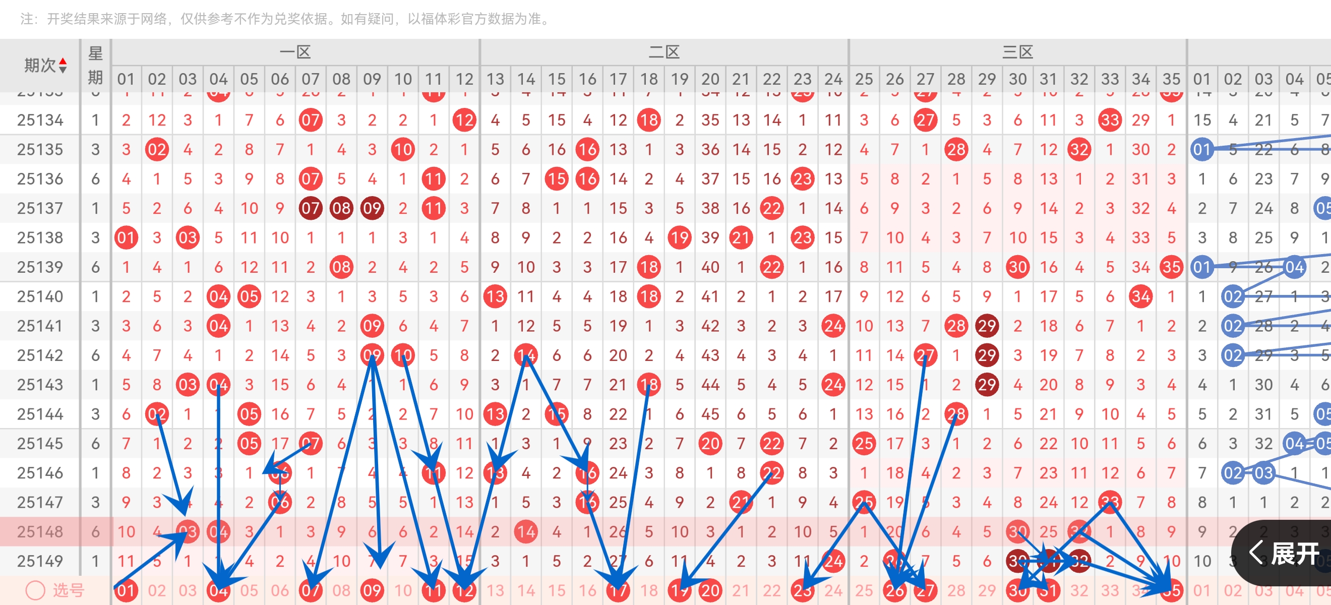第一区间(1-12):近10期占比28%(偏低)第二区间(13-24):占比34%(正常)第三区间(25-35):占比38%(过热)本期重点:补一区缺口,关注07,09,12