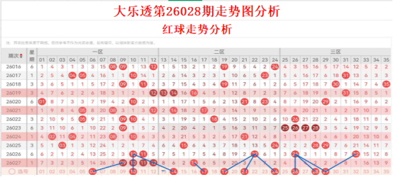 前区28 偶 大(26-35) 三区 凤尾偶数,与29组成上期连号的延伸热度,将和值控制在95(符合82-106区间),且大小比2:3,符合大小均衡的判断。