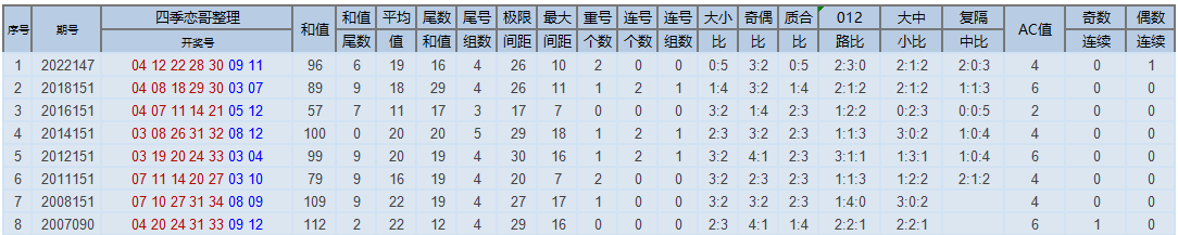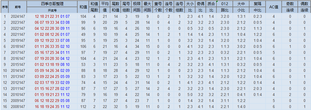 下图为大乐透彩种诞生以来每年的147期各类数据以及历年同日期开奖数据,各位大佬及彩友们请拿走~
