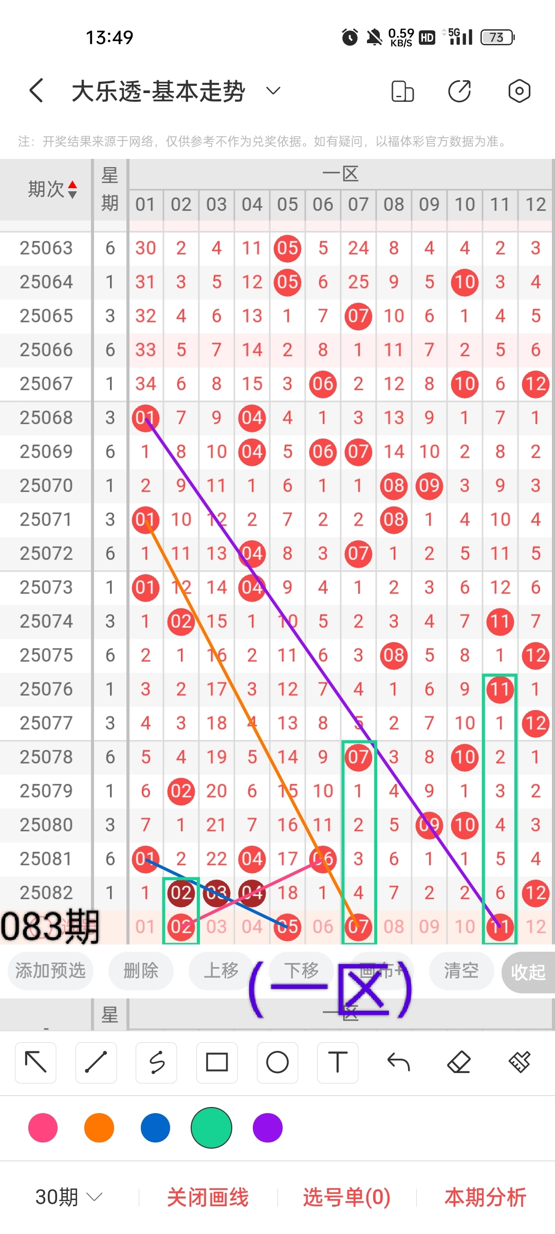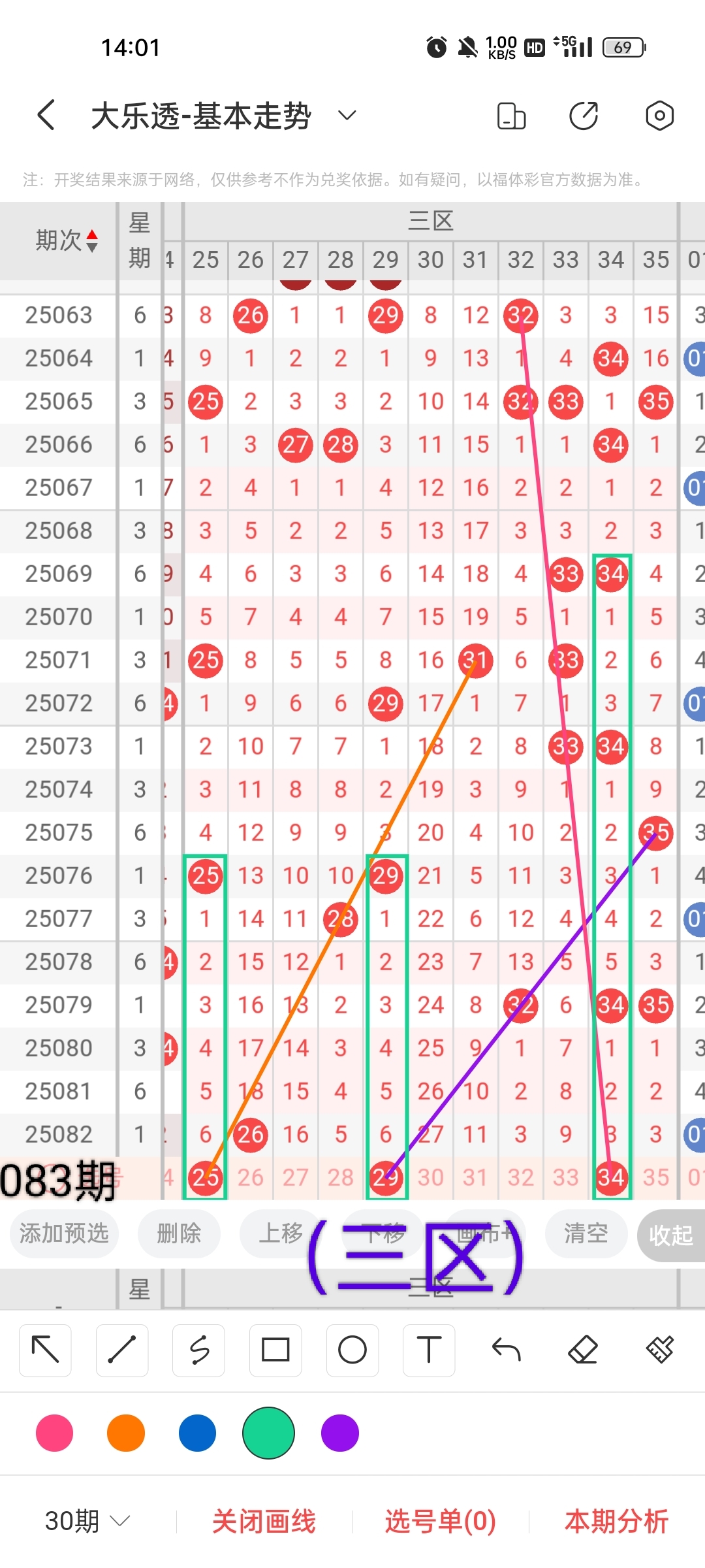 通过以上对上期的简单回顾,下面进入大乐透第2025083期(下面简称本期)的选号分析:
