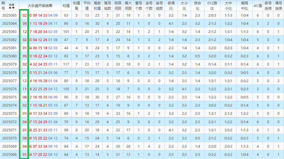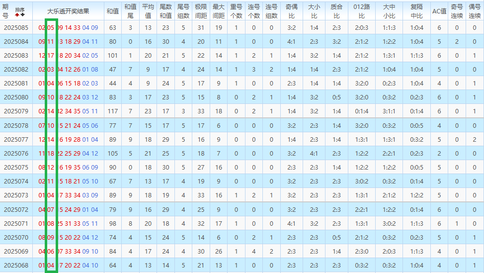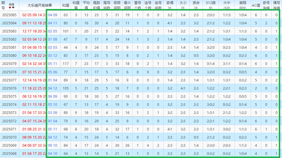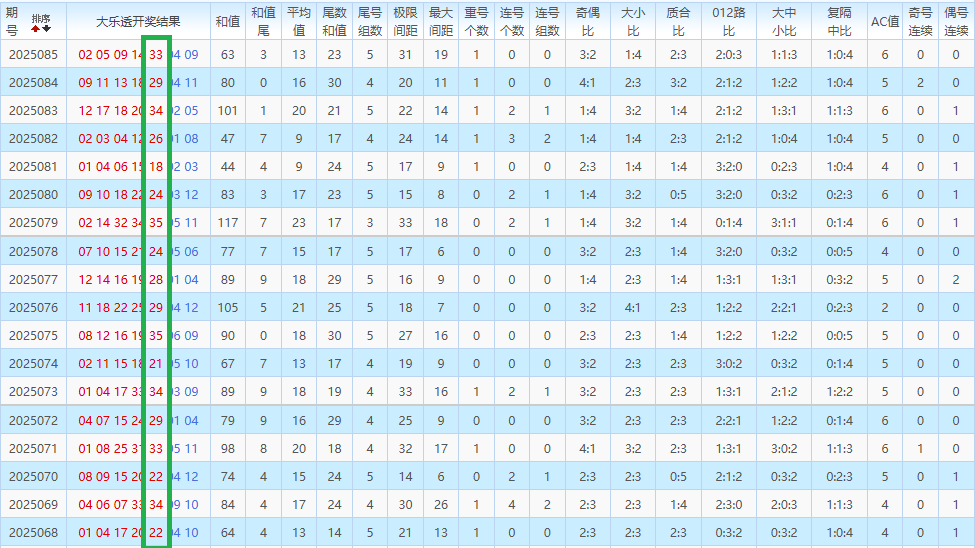 首先回顾大乐透25085期开奖结果:02 05 09 14 33+04 09。