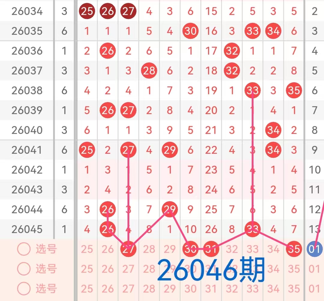 2. 凤尾号码分析:凤尾号码(前区最大号码)上期是33。这是一个偏大的凤尾,过去十期内,凤尾号码多集中在18到35之间,其中3字头号码表现较为活跃。因此,本期应重点关注18-35区间的数字,特别是号码27、30、31、35