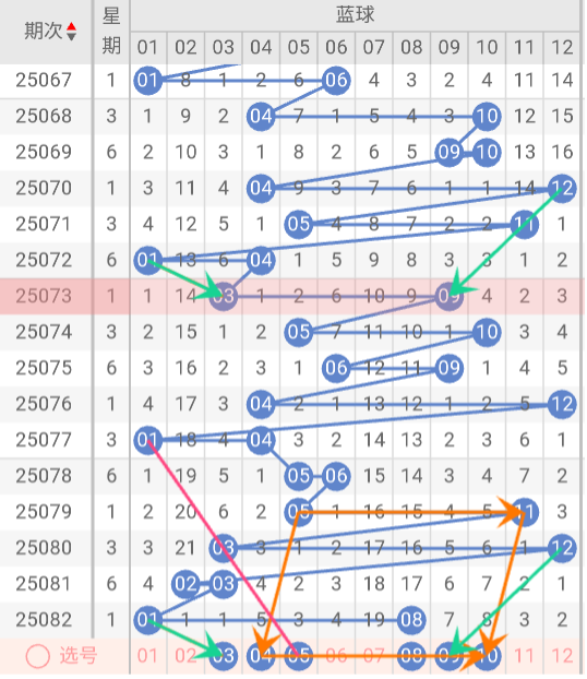 二区(13-24)分析:上期该区没有开出号,近10期占比40%,与上期相比-4%。本期无三斜连号趋势,隔码斜连走势:23。上期断档,回补概率>85%,历史数据显示断档后次期出号≥2枚占比90%,平均回补2.2个号码,但需要考虑与一区的联动,如果一区回调到1码,二区就有空间容纳2-3码 。推荐关注号码:13、16、17、18、20。