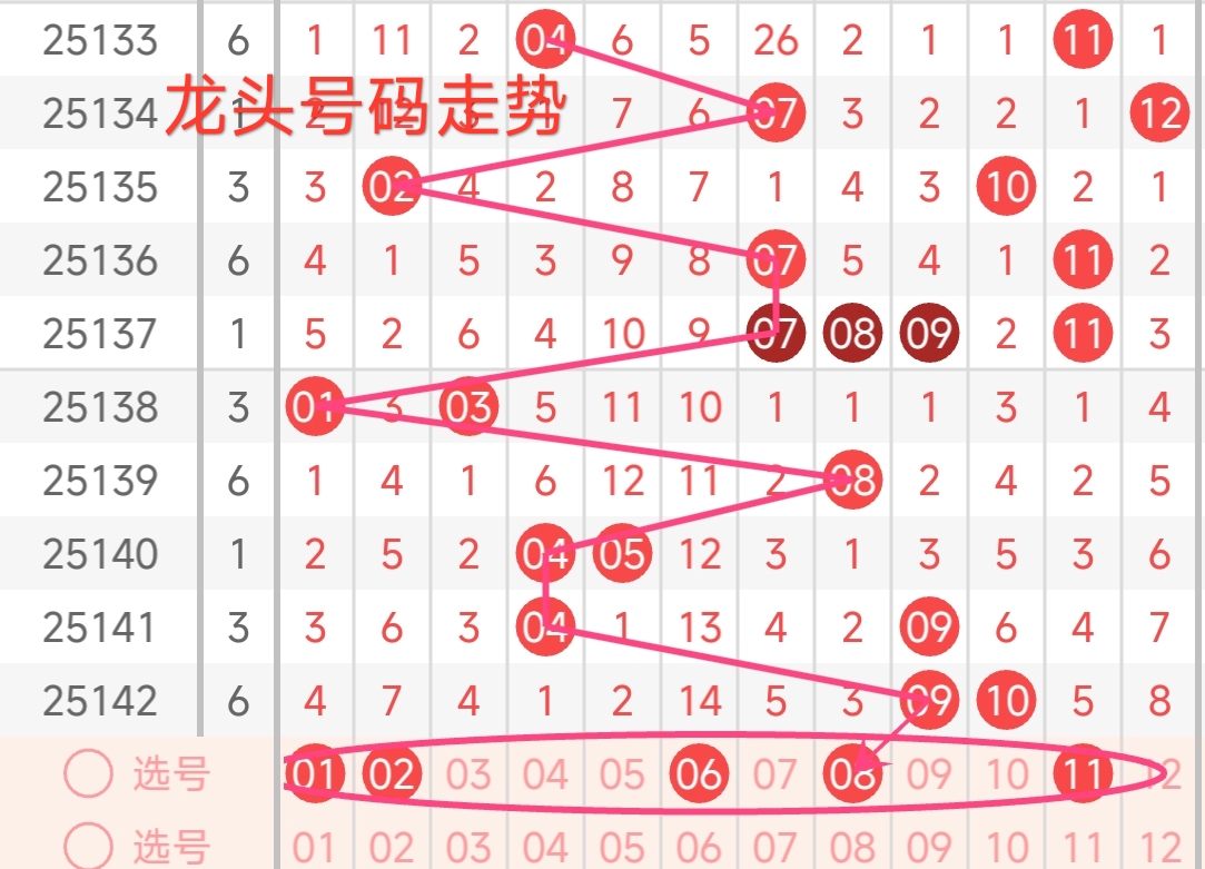 上期龙头号码为09,振幅上升了5点,开出奇数号码。从近期龙头号码的走势来看,近期龙头号码波动频繁。上回顾近期龙头号码,多集中在01 - 10区间。上期龙头为09,从走势来看,龙头号码有逐渐向小号码偏移的趋势。预计本期龙头号码可能会在01 - 12之间。小号码出现的概率相对较大,而且近期小号码作为龙头的情况较为频繁。本期还需注意连续多期漏出的号码,需重点关注,有回补龙头号码的趋势。 综合考虑,本期龙头号码推荐关注:01、02、06、08、11。