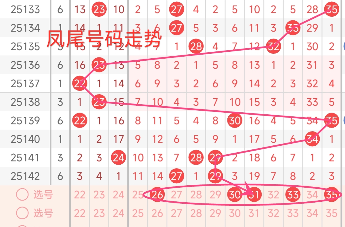 红球三区推荐(25~35):上期红三区开出2枚号码,号码为27、29,本期红三区建议出号1-3枚,本期红三区推荐关注号26、30、31、33、35。
