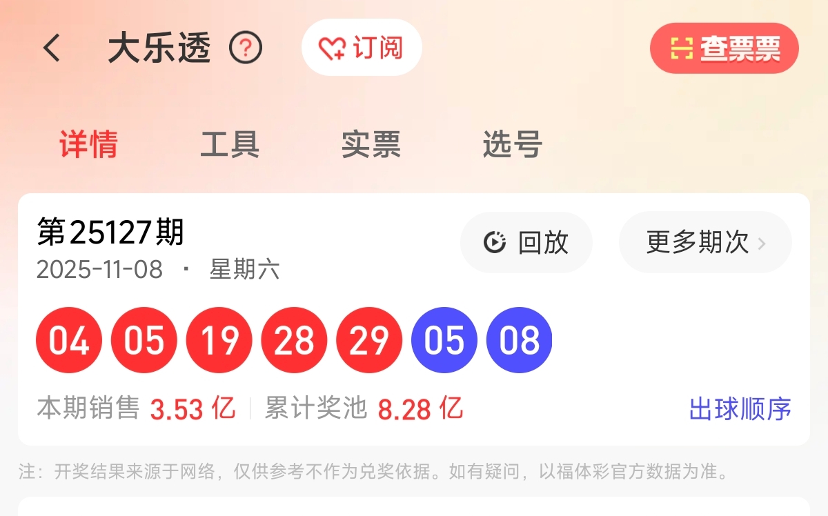 首先让我们回顾一下上期大乐透25127期的开奖为04、05、19、28、29,蓝球05、08。前区和值85,前区跨度25,区间比为2:1:2,奇偶比为3:2。
