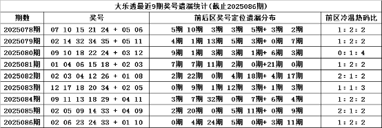 上期开出1个冷码:23,冷码开始解冻,近9期冷码表现非常活跃,目前前区有5个冷码:0825273031,本期注意温热号码反弹,防冷码全部轮空。
